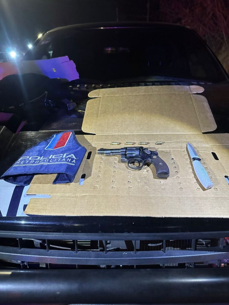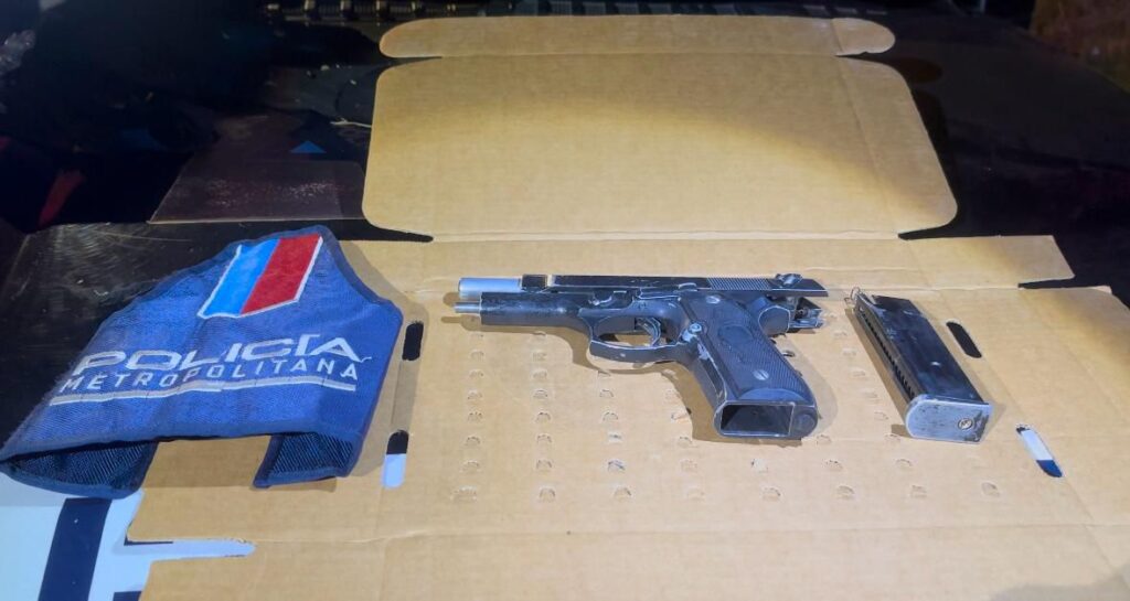 Los oficiales de la policía Metropolitana, luego de perseguirlos y ser amagados por uno de los sujetos con un arma de fuego, les aseguraron un arma calibre 32 y cartuchos útiles al calibre.