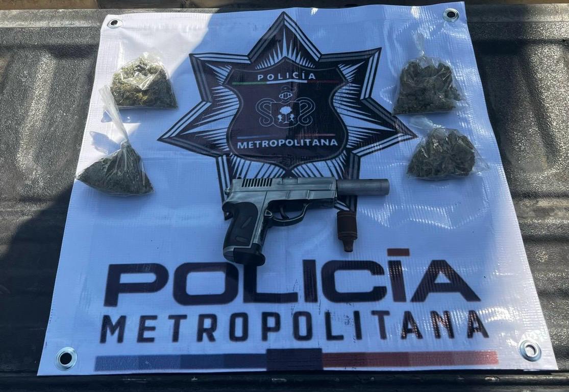 Oficiales de la Policía Metropolitana (Metropol) capturaron a dos presuntos narcomenudistas con supuesta arma de fuego en la Colonia Chulavista, en Tlajomulco de Zúñiga.