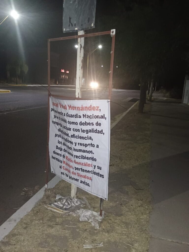 El pasado viernes 18 de abril, en Teocaltiche, aparecieron lonas en contra de elementos de la Guardia Nacional que están asignados a la vigilancia en ese municipio.