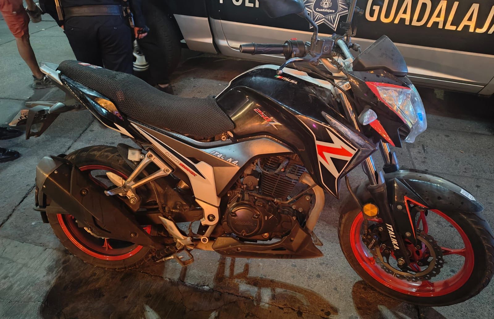 Oficiales estaban en recorrido de vigilancia en las avenidas Circunvalación División del Norte y Ávila Camacho, cuando observaron a dos sujetos a bordo de una motocicleta Italika 250Z en color plateado con franjas rojas y negras, que circulaban sin las medidas de seguridad.