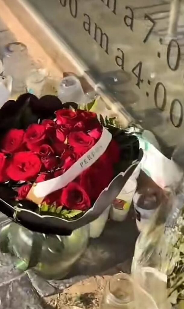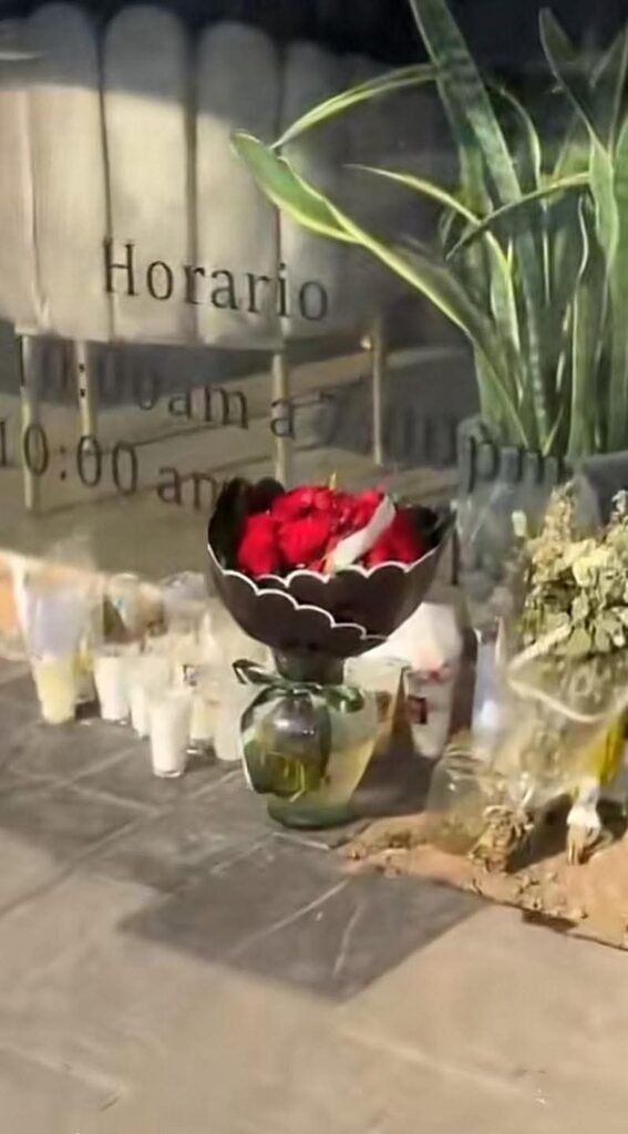 Reportes preliminares señalan que un repartidor dejó el ramo de 24 rosas rojas, envueltas en papel celofán en color negro, y un jarrón de cristal, junto a otros dos pequeños ramos de flores blancas que ya estaban colocados en el sitio; así como 26 veladoras que fueron dejadas por los seguidores de Valeria.