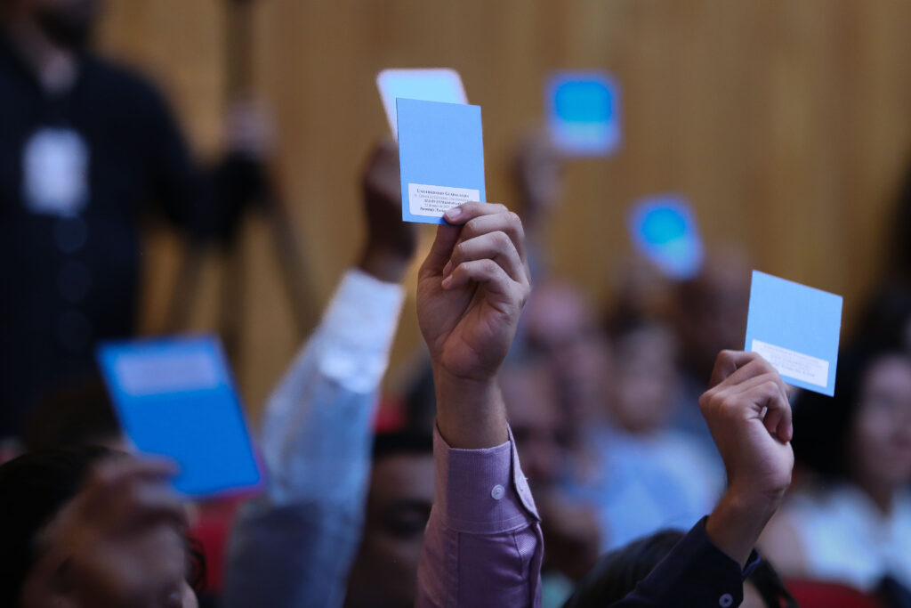En esta Sesión extraordinaria, la Rectora General, maestra Karla Planter Pérez, tomó protesta a las y los 196 nuevos consejeros, quienes integrarán las diferentes comisiones permanentes del CGU para el periodo 2025-2026.