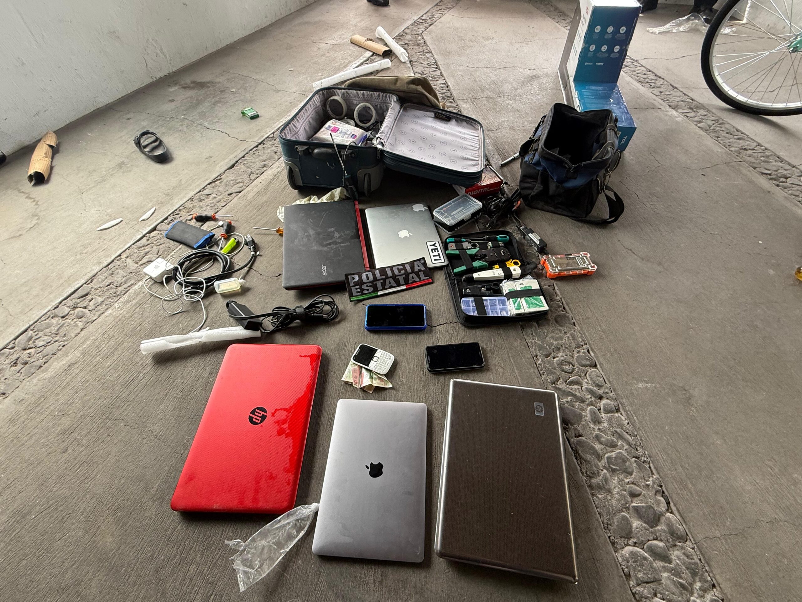 Luego de marcarle el alto y hacerle una revisión apegada a los protocolos de actuación, le encontraron dentro de una maleta cinco laptops, dos teléfonos celulares y una barra de sonido.