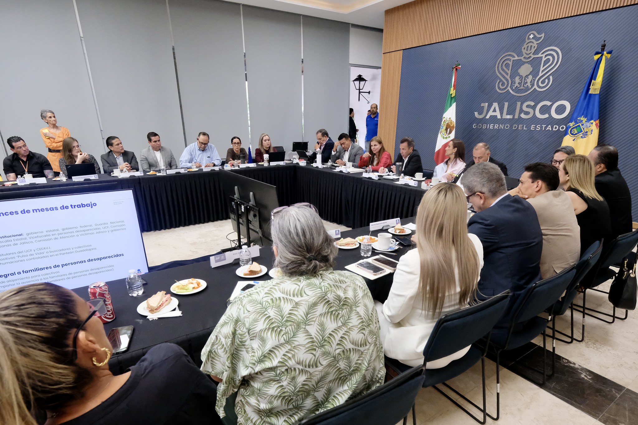 Se encontraron presentes en esta reunión autoridades como Roberto Alarcón Estrada, Coordinador General Estratégico de Seguridad; Maye Villa de Lemus, Presidenta del Sistema DIF Jalisco; Alberto Bayardo Pérez Arce, Subsecretario de Derechos Humanos en Jalisco; Alejandro Axel Rivera Martínez, Director del Instituto Jalisciense de Ciencias Forenses (IJCF); entre otros.