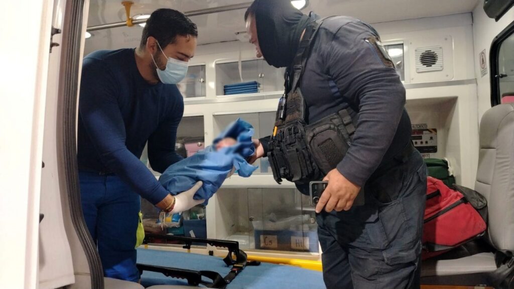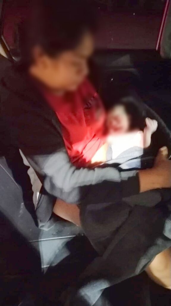 Al acercarse, un hombre de 40 años informó a los oficiales que su esposa, de 26 años, estaba a punto de dar a luz en el asiento trasero de un vehículo Nissan Tiida color plata. Los policías verificaron la situación y, al constatar que la mujer estaba en fase final del parto, le brindaron apoyo inmediato e indujeron el alumbramiento, logrando con éxito que naciera el bebé, quien a simple vista presentaba buena condición y coloración.
