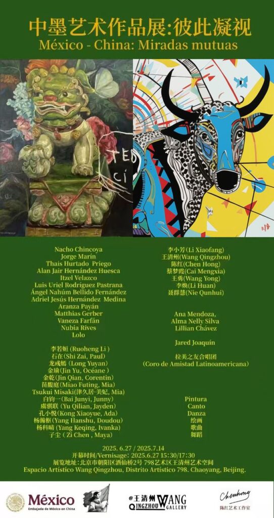 La Embajada de México en China inauguró la exposición de intercambio cultural «México-China, Miradas Mutuas» el 27 de junio. La muestra, ubicada en el Espacio de Arte Qingzhou del icónico Distrito de Arte 798 de Pekín, presenta obras de 33 reconocidos artistas de China y México.