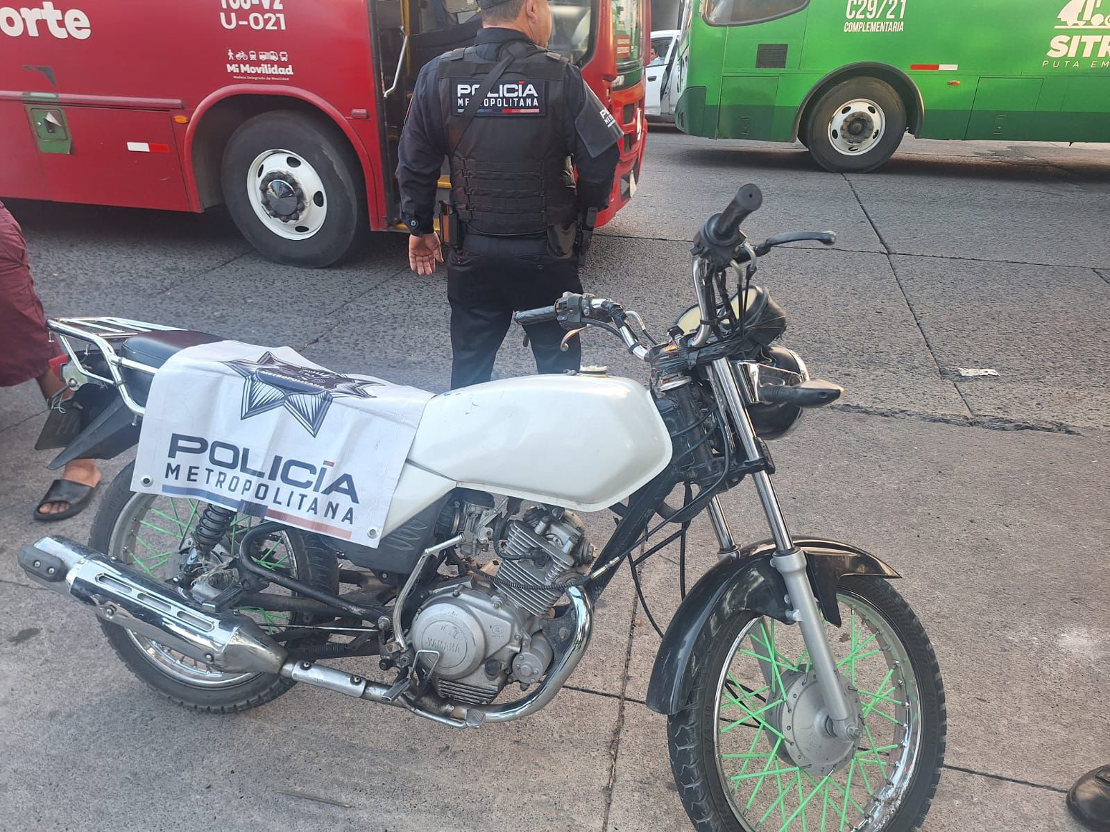 Al marcarles el alto, estos intentaron huir, pero fueron interceptados metros adelante. Al verificar las placas del vehículo, los oficiales confirmaron que la motocicleta contaba con reporte de robo.