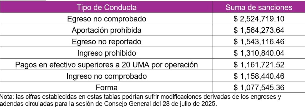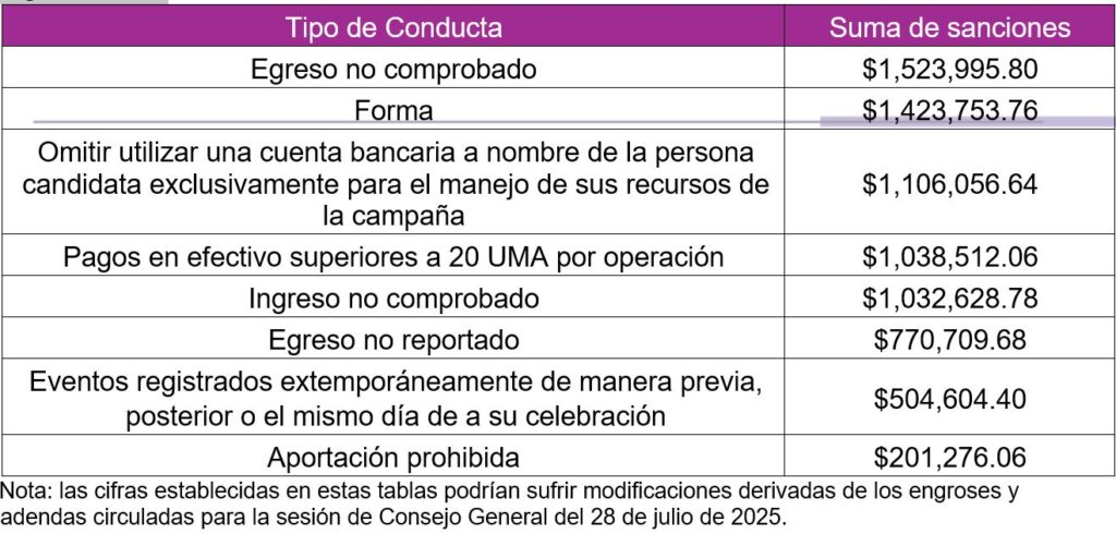 El Consejo General del Instituto Nacional Electoral (INE) aprobó imponer sanciones económicas por un monto aproximado de 18 millones de pesos por irregularidades encontradas, luego de la revisión de los informes únicos de gastos de campaña de las personas candidatas a los cargos disputados en el Proceso Electoral Extraordinario del Poder Judicial de la Federación (PJF) 2024-2025, así como de las candidaturas a poderes judiciales locales de 19 entidades.