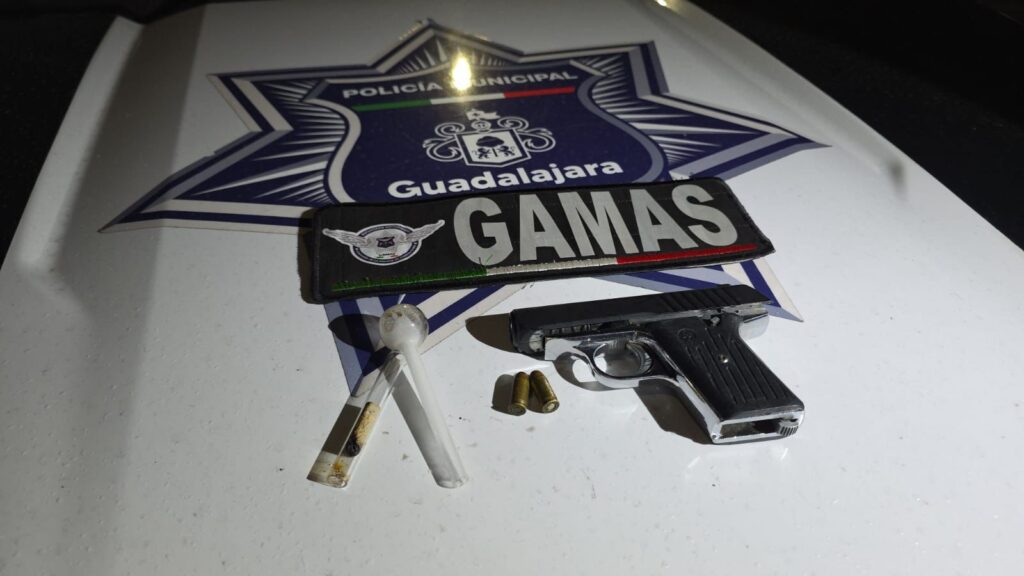 Al hacerles una revisión conforme a protocolo, les localizaron una pistola aparentemente calibre .380 con dos tiros útiles y fueron asegurados.