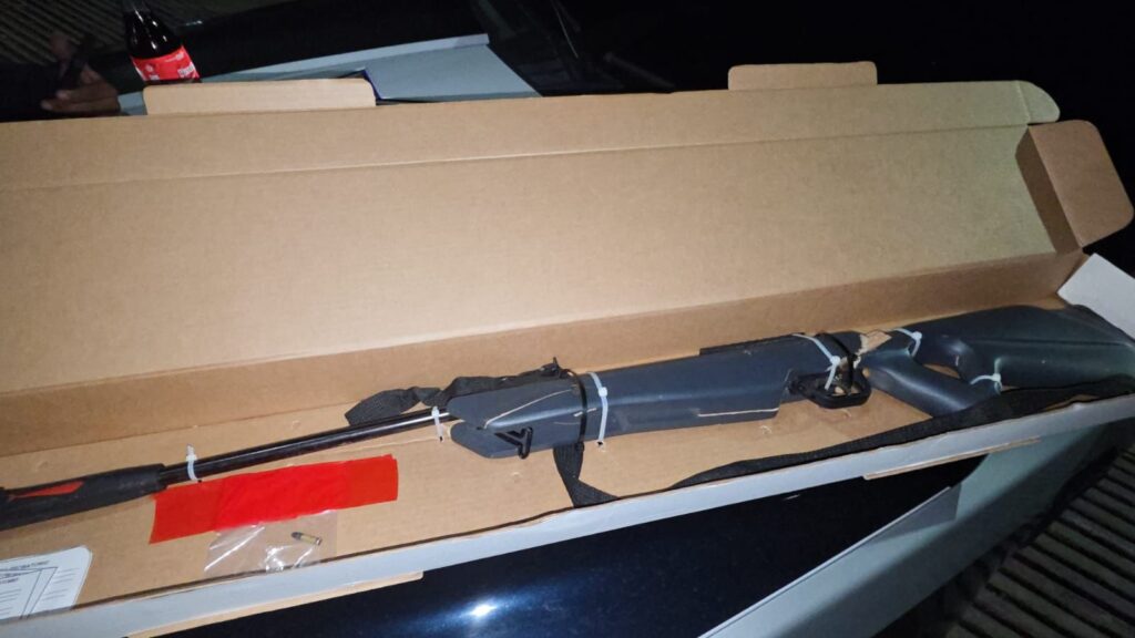 Los elementos le marcaron el alto y al hacerle una revisión conforme a protocolo, le localizaron un rifle hechizo con un cartucho útil aparentemente calibre .22, por lo que fue asegurado.