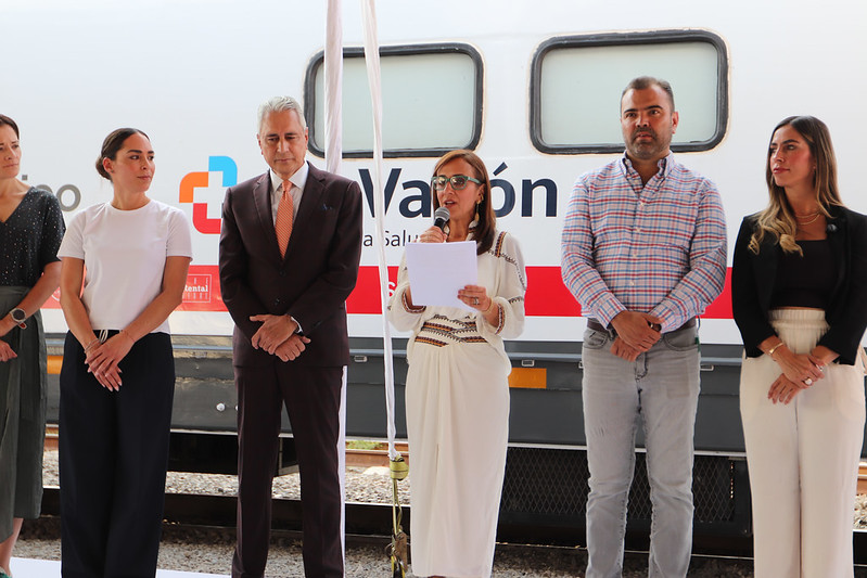 “Hoy celebramos que con este tren, la salud llega literalmente a las vías más apartadas, rompiendo barreras de distancia y acceso. Y lo hacemos de corazón, porque lo que está en el centro de este esfuerzo, es la dignidad y el bienestar de cada persona de cada familia», afirmó Villa de Lemus.