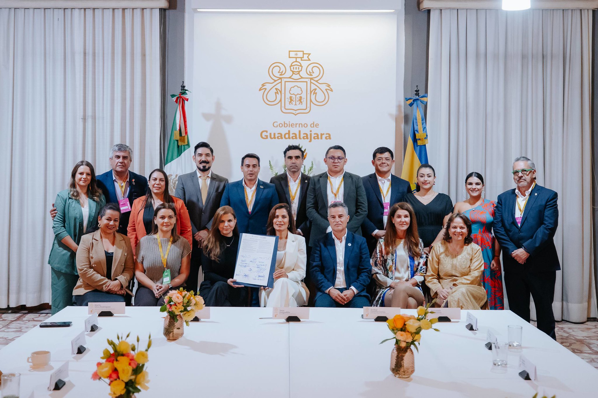 En la firma estuvieron representantes de estas ciudades, así como Héctor García Curiel, coordinador general de Patrimonio de la UdeG; Sergio Roldán Gutiérrez, coordinador general de Hábitat Latam Guadalajara 2025; Aníbal Gaviria, ex Gobernador de Antioquía; Mario Silva Rodríguez, Jefe de la Oficina Ejecutiva de Presidencia de Guadalajara; Martha Delgado Peralta, subsecretaria de Asuntos Multilaterales y Derechos Humanos de la Secretaría de Relaciones Exteriores de México, y Fernanda Lonardoni, representante de ONU-Hábitat para México, Cuba y Centroamérica.
