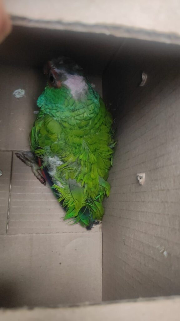 Al descender de la unidad, se dieron cuenta que se trataba de un loro, por lo que lo aseguraron.