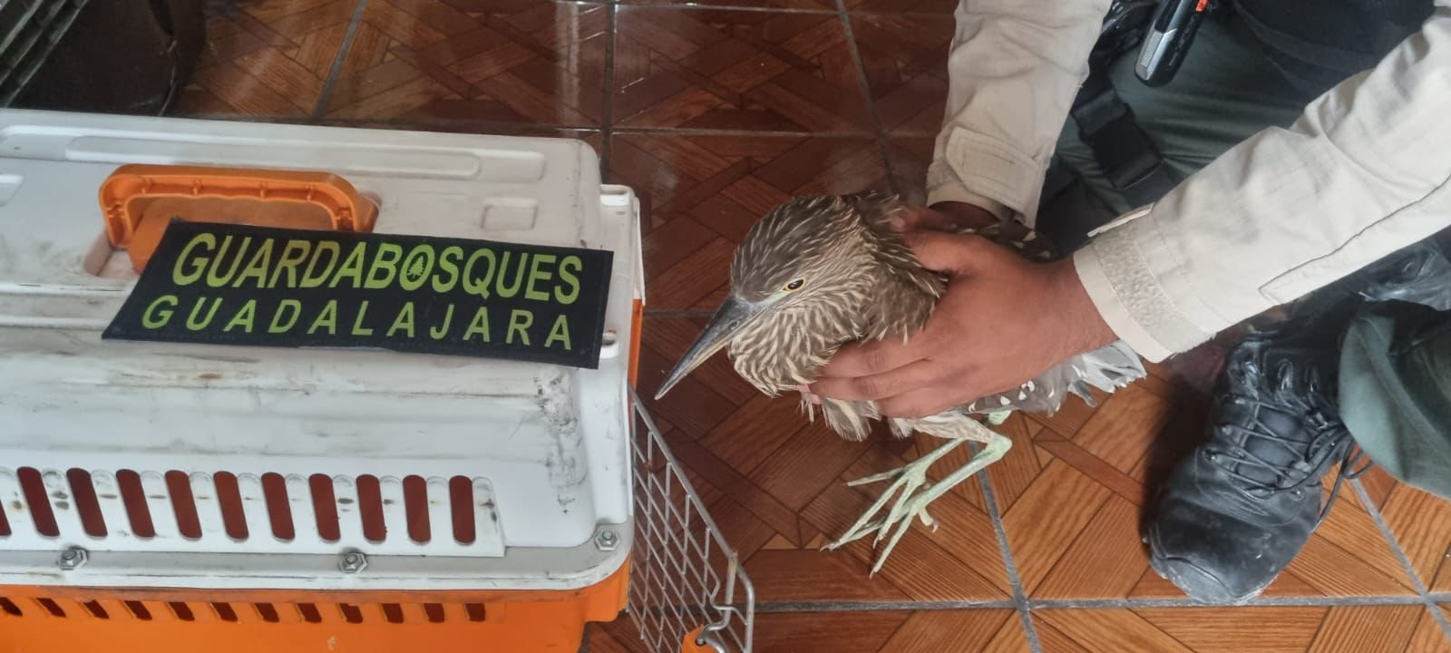 Oficiales de Guardabosques de la Comisaría de Seguridad Ciudadana de Guadalajara aseguraron a un loro y una garza que contaban con lesiones, en las colonias San Andrés y San Rafaél.