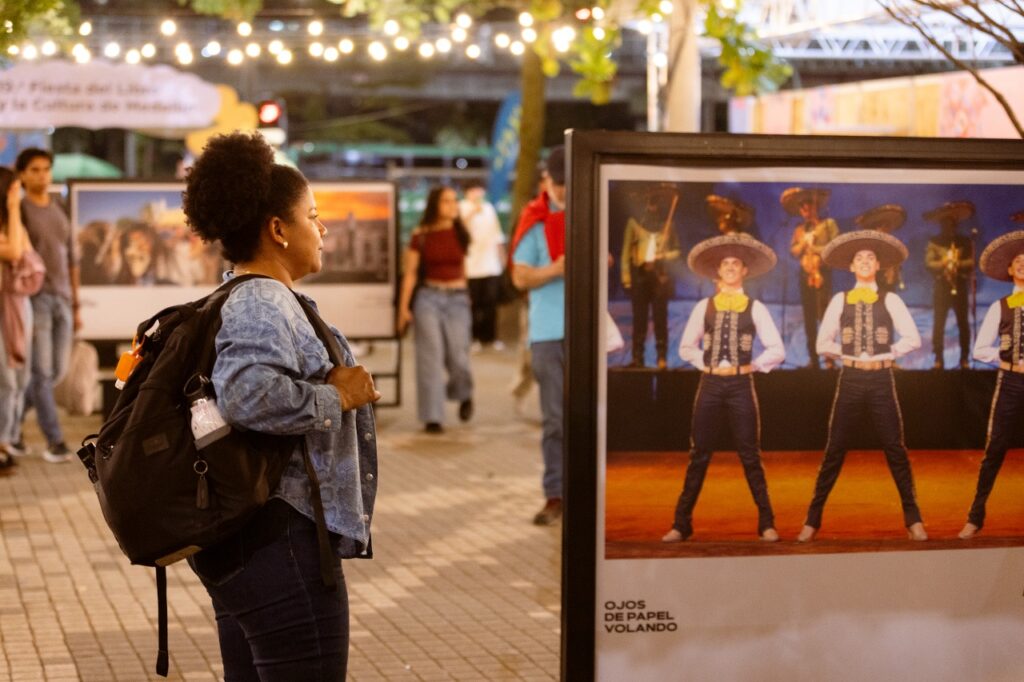 La exposición “Ojos de Papel Volando”, curada por Museos, Exposiciones y Galerías de Jalisco (MEG), se instaló en la avenida Carabobo, a la entrada del recinto ferial, en una zona de paso obligado para miles de transeúntes.