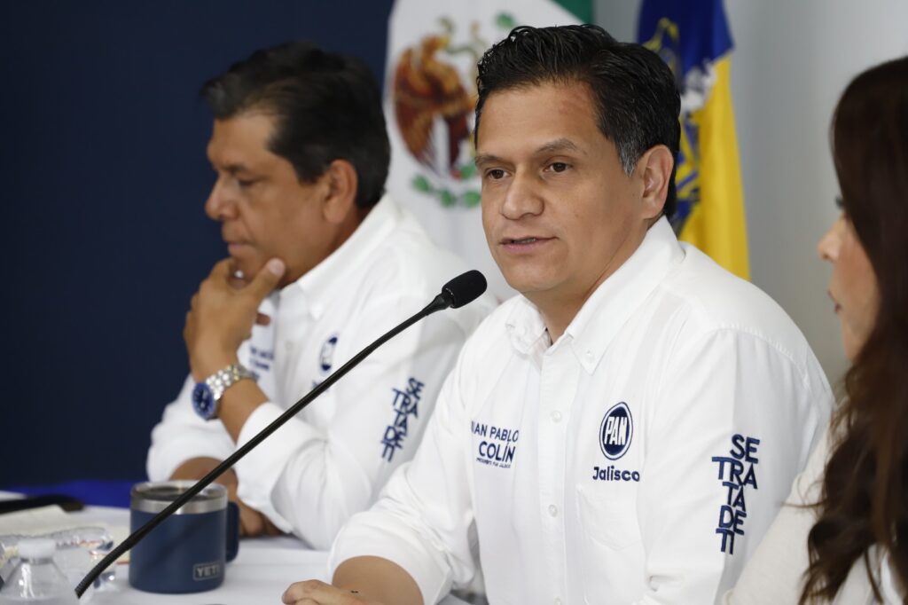 El presidente estatal del PAN Jalisco, Juan Pablo Colín, encabezó este lunes un posicionamiento en el que calificó como una ofensa al estado la reciente visita de la presidenta de la República, a quien acusó de venir a hacer propaganda política y no rendición de cuentas.