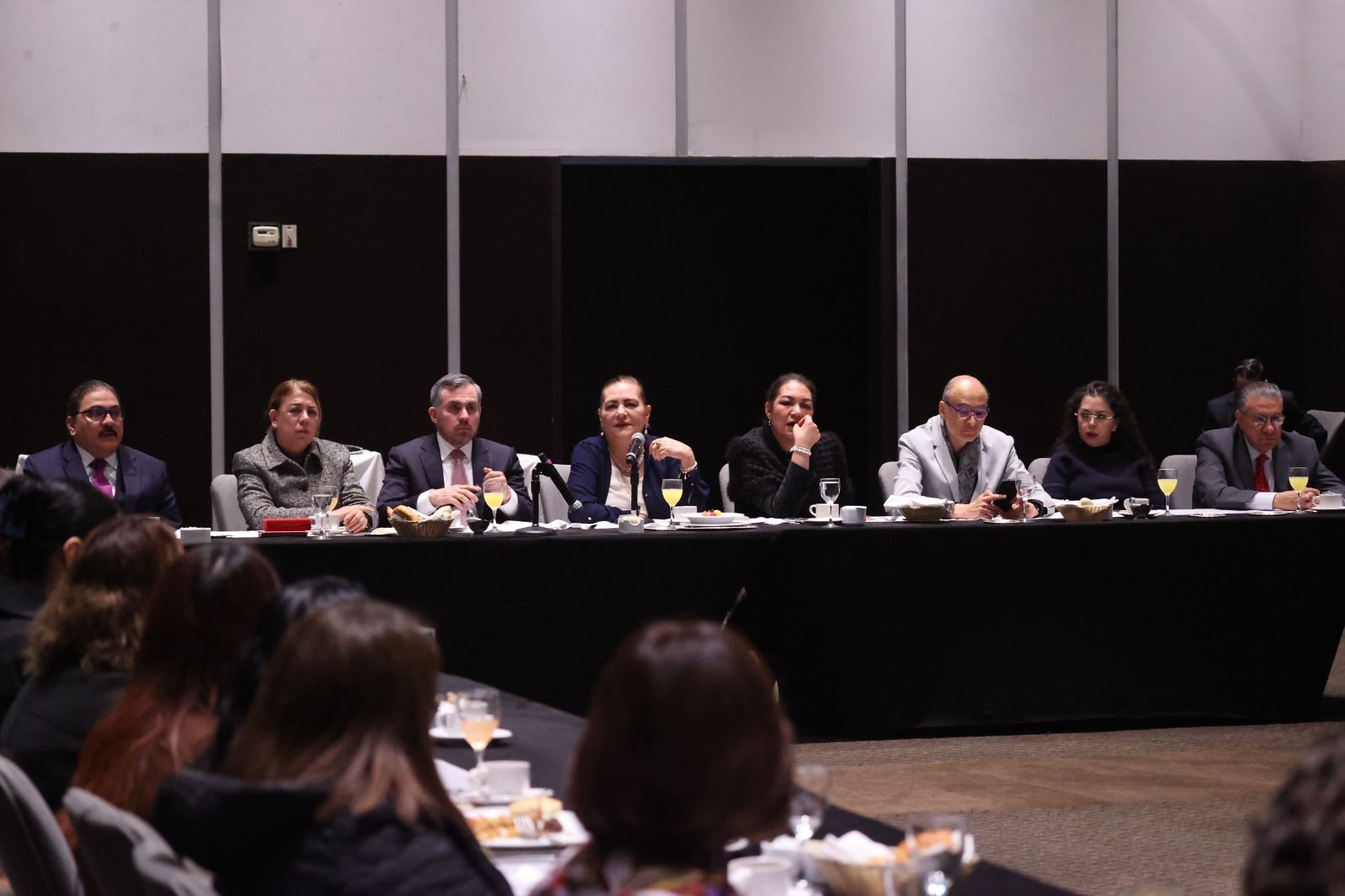 Acompañada por las consejeras Dania Ravel Cuevas y Carla Humphrey Jordan, los consejeros Martín Faz Mora y Uuc-kib Espadas Ancona, así como por la Secretaria Ejecutiva Claudia Arlett Espino e integrantes de la Junta General Ejecutiva, Taddei Zavala conoció las conclusiones de mesas temáticas enfocadas en planeación estratégica, comunicación efectiva, trabajo en equipo y resolución de conflictos.