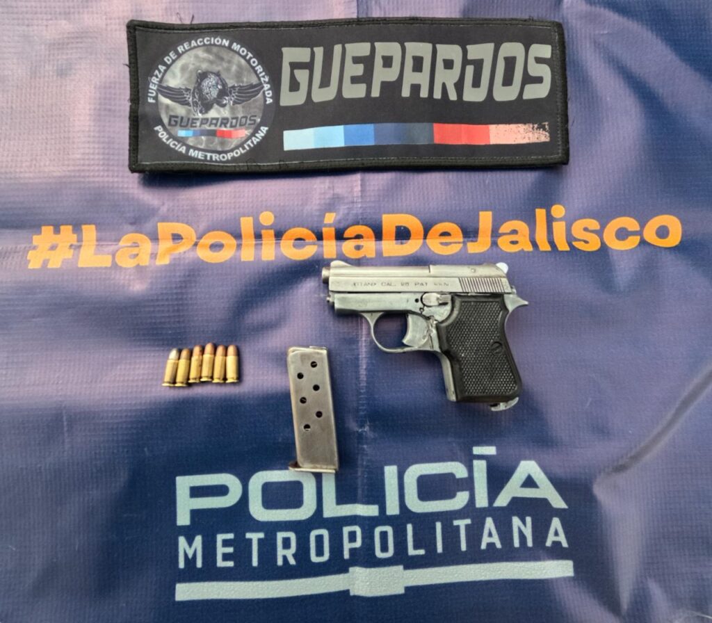 Un hombre que presuntamente se hacía pasar por guardia de seguridad privada fue detenido por la Policía Metropolitana (Metropol) al ser sorprendido portando un arma de fuego sin contar con el permiso correspondiente, afuera de una estación del Tren Ligero en Guadalajara.