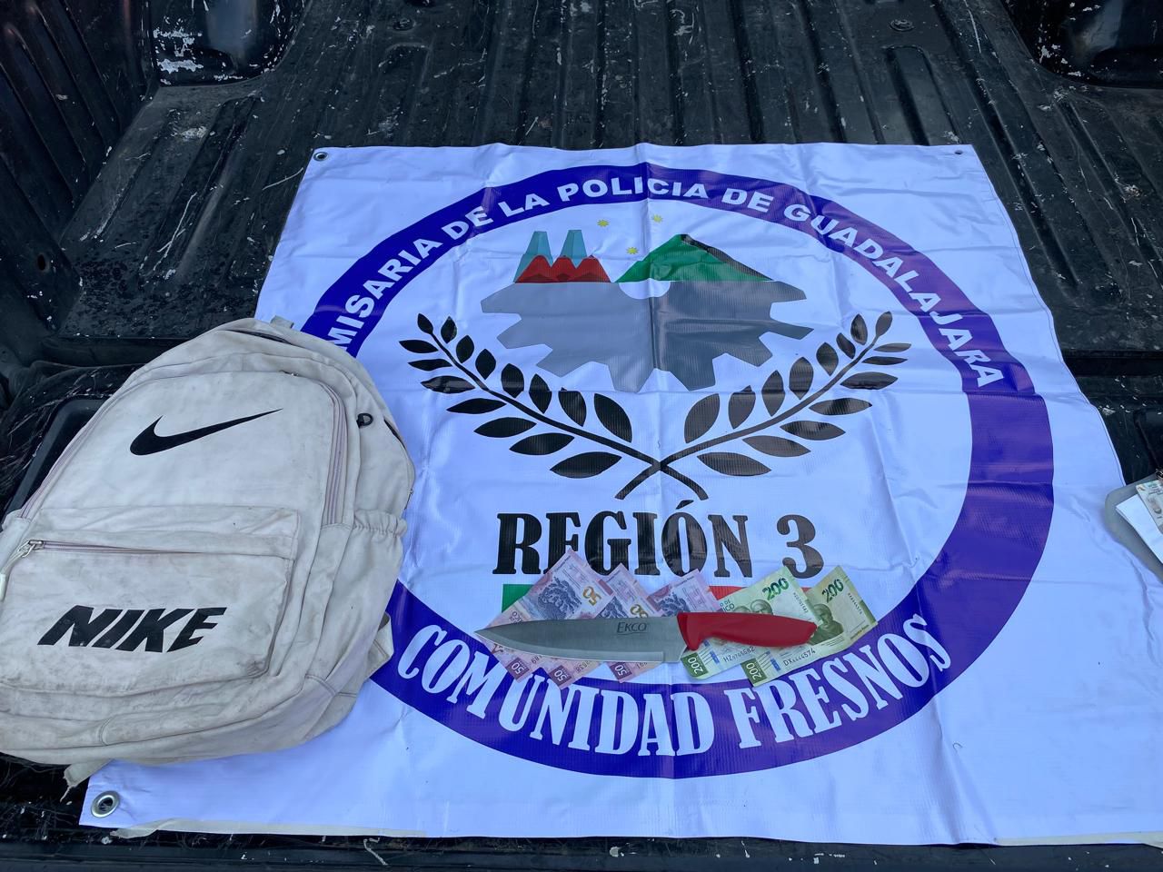 Luego de una persecución, el hombre fue asegurado y al hacerle una revisión conforme a protocolo, le localizaron una mochila, alrededor de 550 pesos en efectivo y un cuchillo.