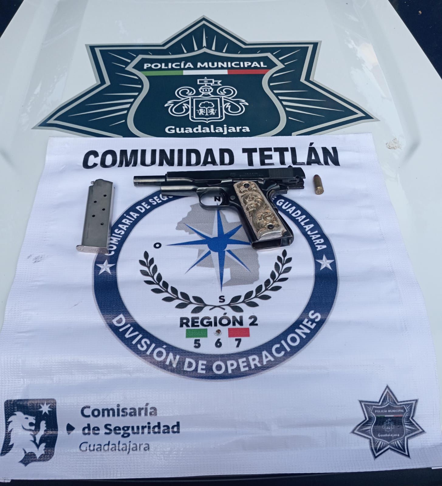 Policías de la Comisaría de Seguridad Ciudadana de Guadalajara detuvieron a un hombre que viajaba a bordo de una camioneta y le aseguraron una pistola, en la Colonia Jardines de San Francisco.