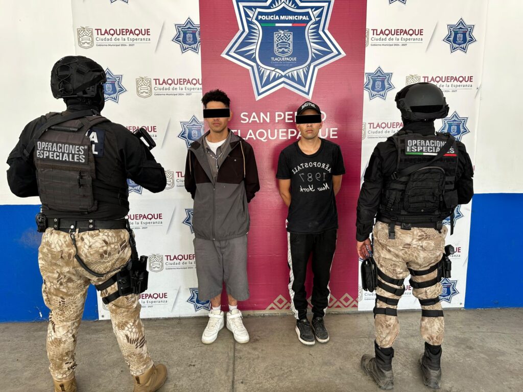 Oficiales de la Secretaría de Seguridad y Protección Ciudadana de San Pedro Tlaquepaque lograron la detención, en dos hechos distintos, de tres hombres en posesión de armas de fuego y presunta droga en el municipio.