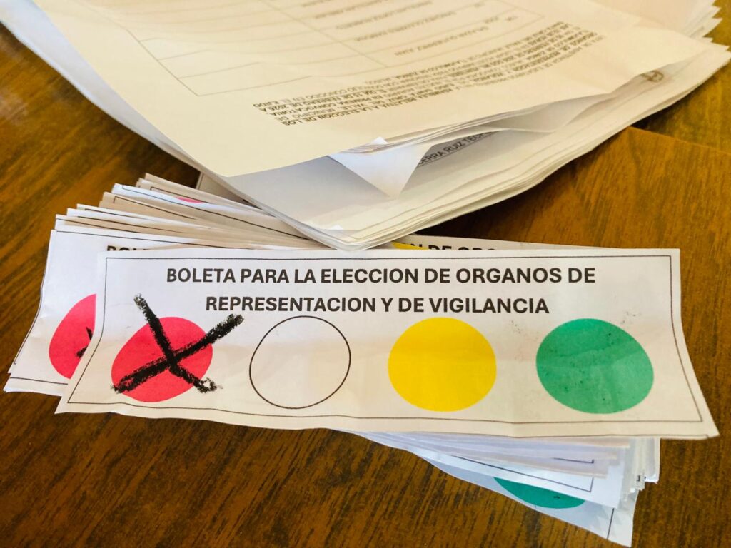 Luego de la voyación la planilla roja fue la ganadora, con 54 sufragios a favor, y la cual encabeza Moises Martínez García.