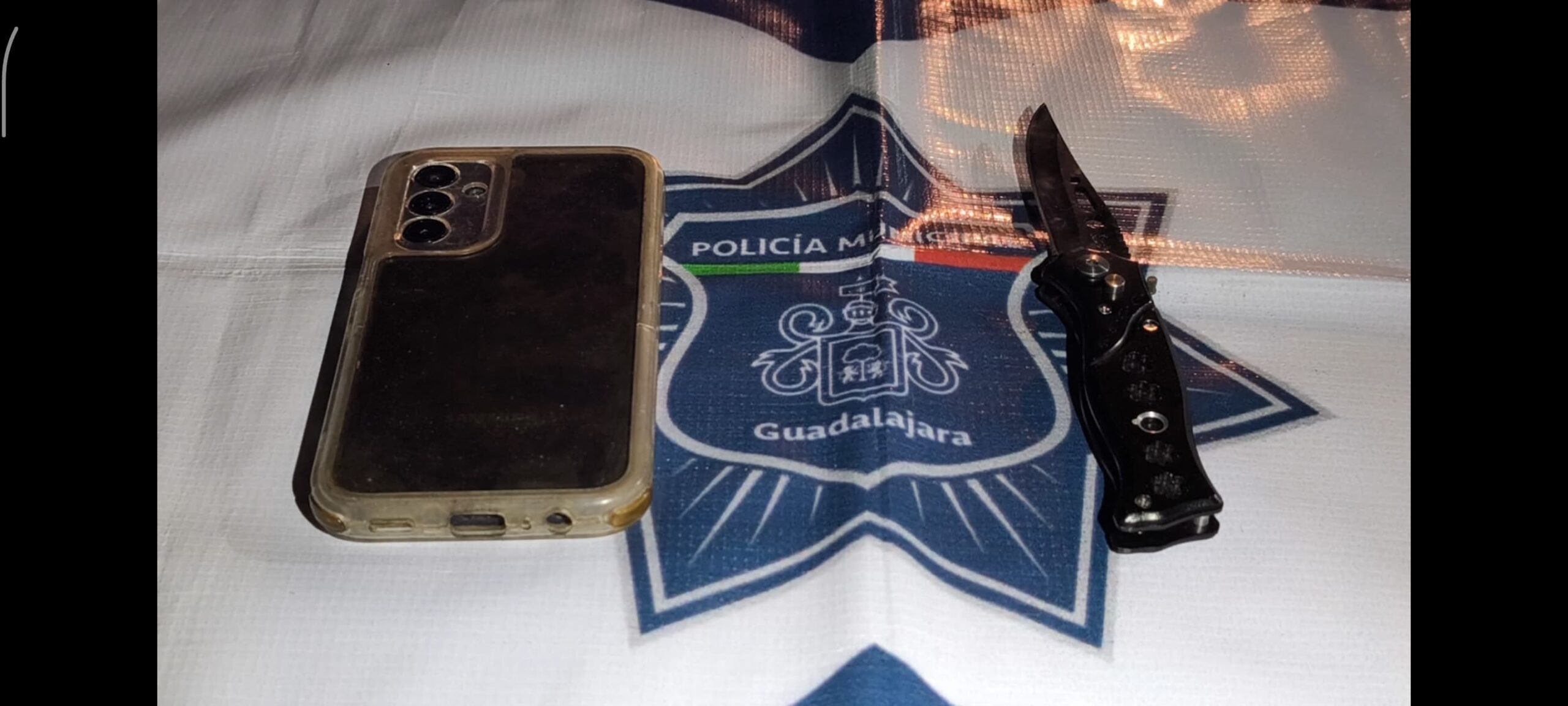 ​Por este hecho se realizó una inspección bajo protocolo en la que se localizó una navaja con hoja de aproximadamente 15 centímetros y un teléfono celular marca Samsung, la víctima reconoció plenamente como de su propiedad.