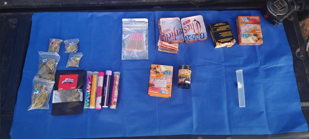 Tras su registro preventivo correspondiente, al masculino de 25 años de edad, le fueron localizados varios envoltorios con material granulado con las características de la droga conocida como cristal, polvo blanco con las características de la cocaína, piedra base y vegetal con las características de la marihuana por lo que fue puesto en custodia.