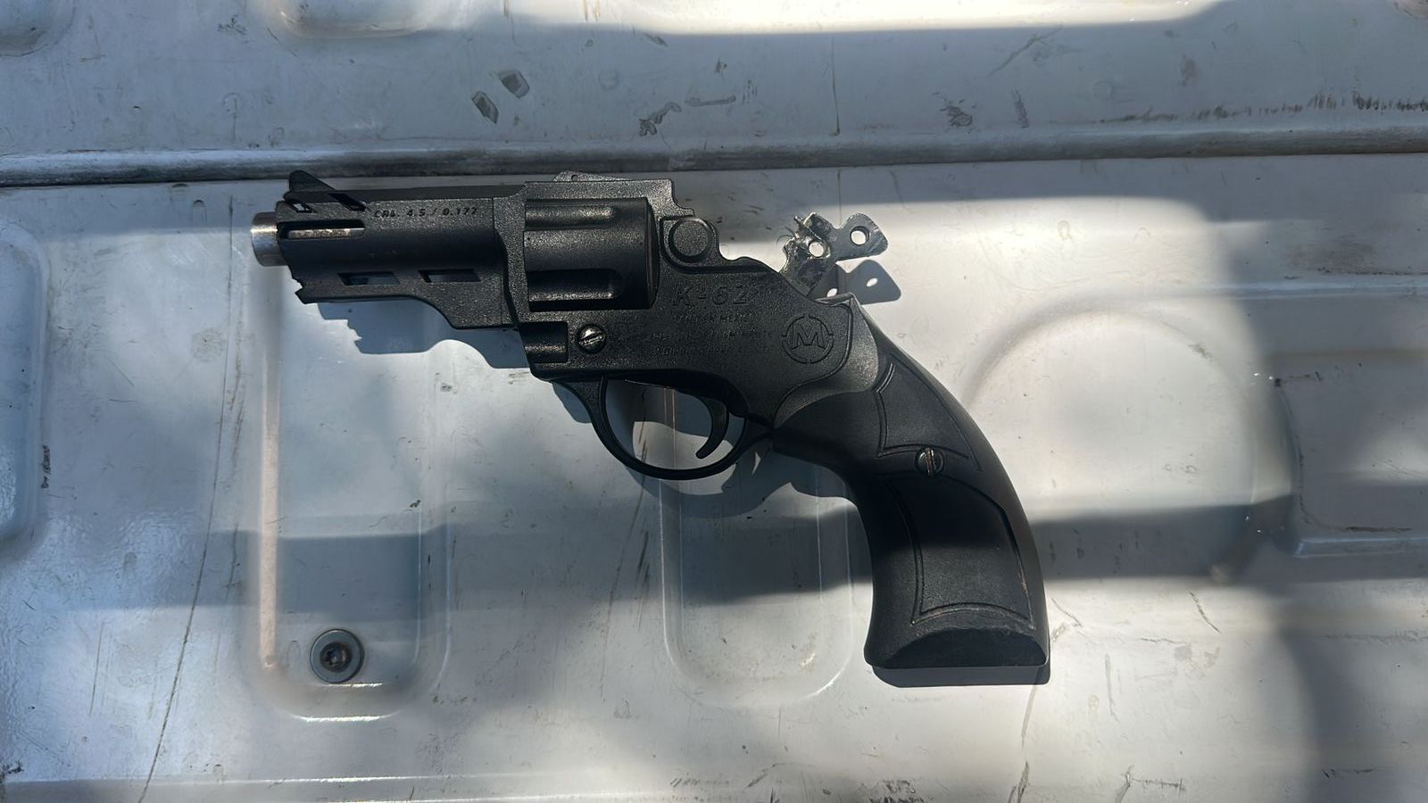 Los elementos le marcaron el alto y luego de hacerle una revisión conforme a protocolo, le localizaron un revólver con un tiro útil aparentemente calibre .380, por lo que fue asegurado.
