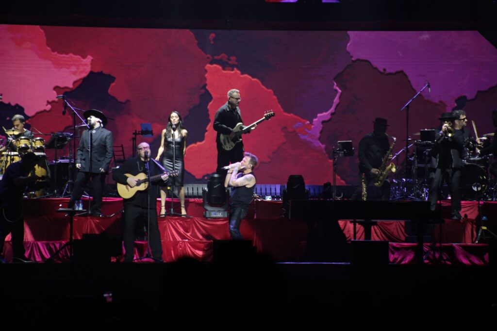 La noche continuó con un repertorio que mantuvo al público completamente entregado, incluyendo interpretaciones de “Que Me Alcance La Vida”, “Te Vi Venir” y “Entra En Mi Vida”, piezas que han consolidado a Sin Bandera como uno de los proyectos más influyentes del pop latino romántico.